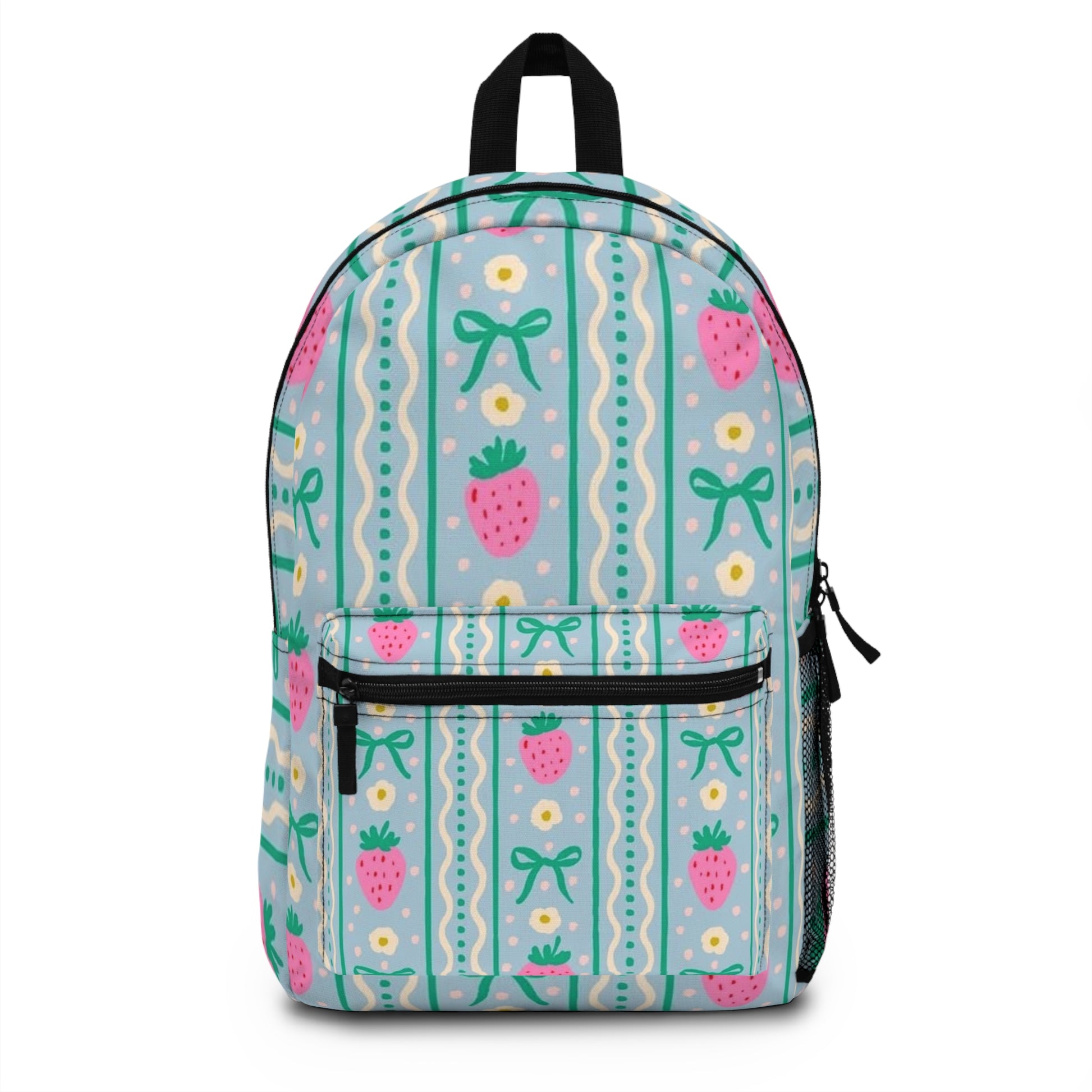 This charming backpack brings a playful vibe to your daily routine. Adorned with delightful strawberry and ribbon patterns, it adds a touch of fun to school, work, or weekend adventures. Perfect for students, young professionals, or anyone looking to brighten their day, it’s versatile enough for everyday use or special outings. Ideal for back-to-school season, summer camps, or casual get-togethers, this backpack makes a delightful gift for birthdays or holidays. Its vibrant design fosters a sense of joy and creativity, making it a must-have accessory for those who love expressing their personal style.